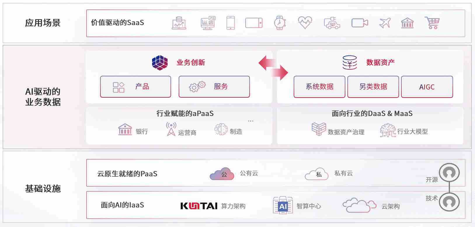数字时代,,,围绕企业数字化转型的关键要素,,,JACKPOT数码开创性的提出数云融合战略和技术体系框架,,,,着力在云原生、、、、数字原生、、、、AI原生和信创产业上架构产品和服务能力,,,,为处在不同数字化转型阶段的快消零售、、、、汽车、、金融、、、、医疗、、、政企、、教育、、、、运营商等行业客户提供泛在的敏捷IT能力和融合的数据驱动能力,,,,构建跨界融合创新的数字业务场景和新业务模式,,,,助力企业级客户建立面向未来的核心能力和竞争优势,,,,全面推动社会的数字化、、、、智能化转型升级。。