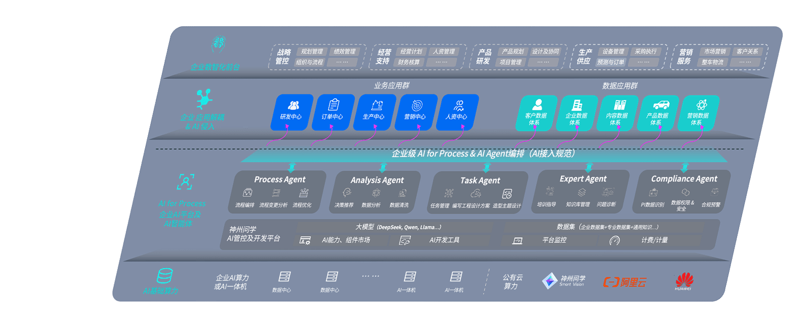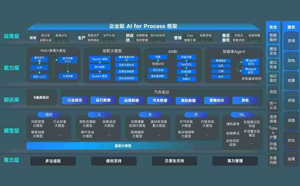 端到端的一站式AI工作空间深度融合了从企业战略规划到日常经营的全流程业务板块,,,,定向解决车企内部领域多、、、部门多、、链条长、、、、场景碎片化等难题,,,,支持车企快速构建以AI为核心的生产力写作体系,,,,实现任务执行与AI能力的无缝集成与交互